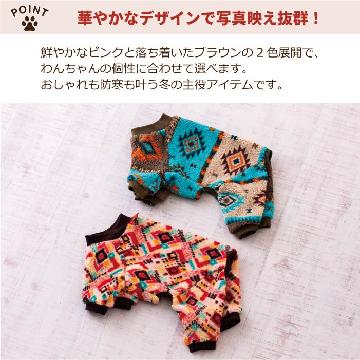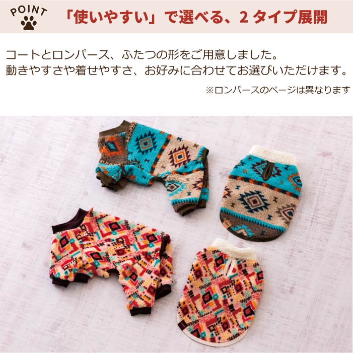 ネイティブ柄の総柄ボア素材はやわらかで軽く、肌触りも抜群。