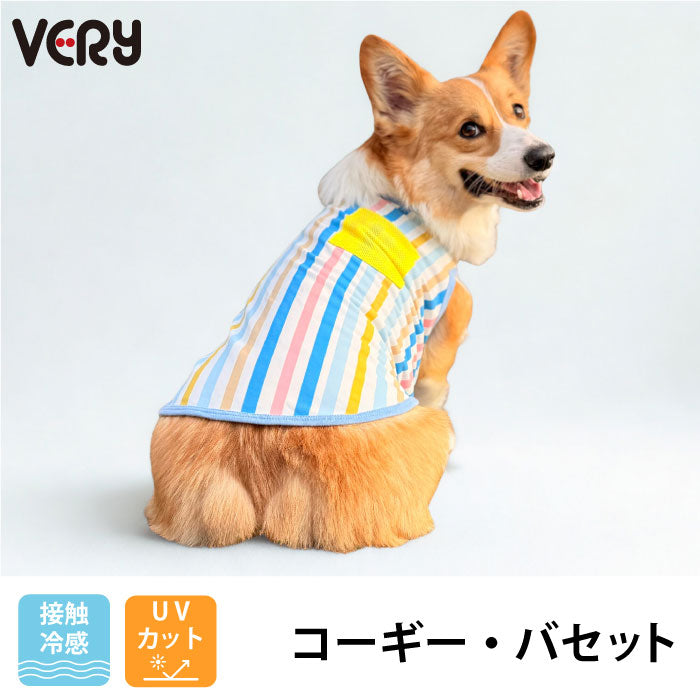 コーギー・バセット [全23size展開]<br>プリントクールタンク ストライプブルー - VERY-PET