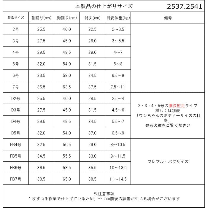 ※毛の多めのワンちゃんや、長毛犬種のワンちゃんは、ワンサイズ大き目の洋服をお選びいただくことをオススメします。