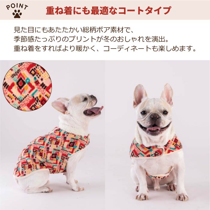 ネイティブ柄のプリントボア素材はやわらかな肌触りで、着心地も抜群です。