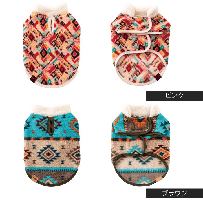 ネイティブ柄のプリントボア素材はやわらかな肌触りで、着心地も抜群です。