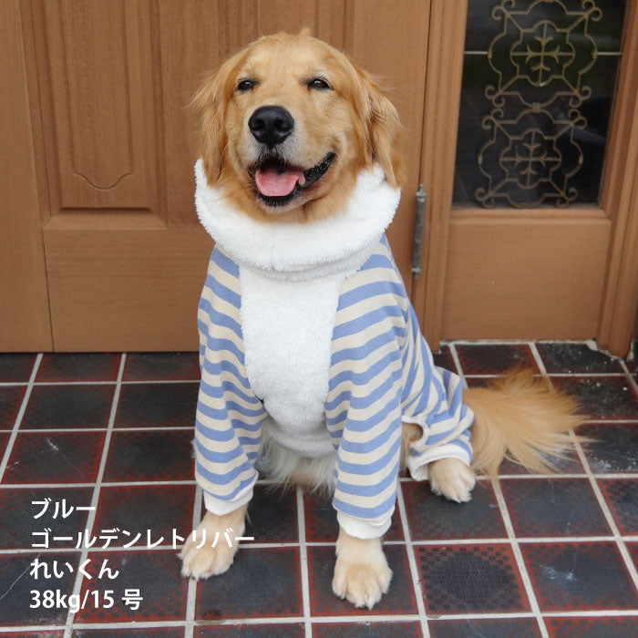 【スタイプレゼント対象商品】小型~超大型 ダックス 胴長 [全32size展開]<br>裏起毛フード付きボーダーロンパース